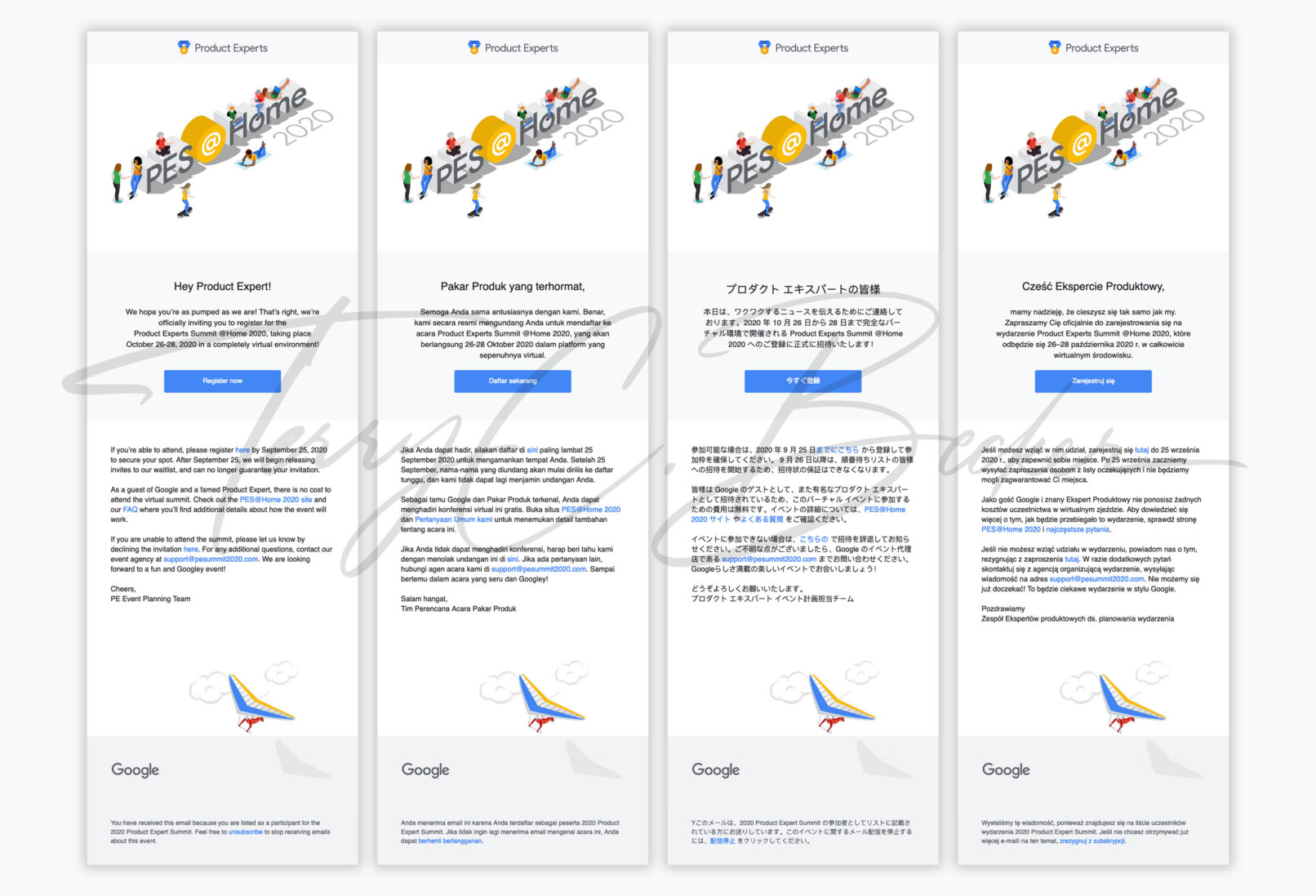 With COVID lock down in place, it was wisely decided to make the event virtual. The event emails were deployed in 14 different languages, resulting in 112 total emails coded and reviewed for content.